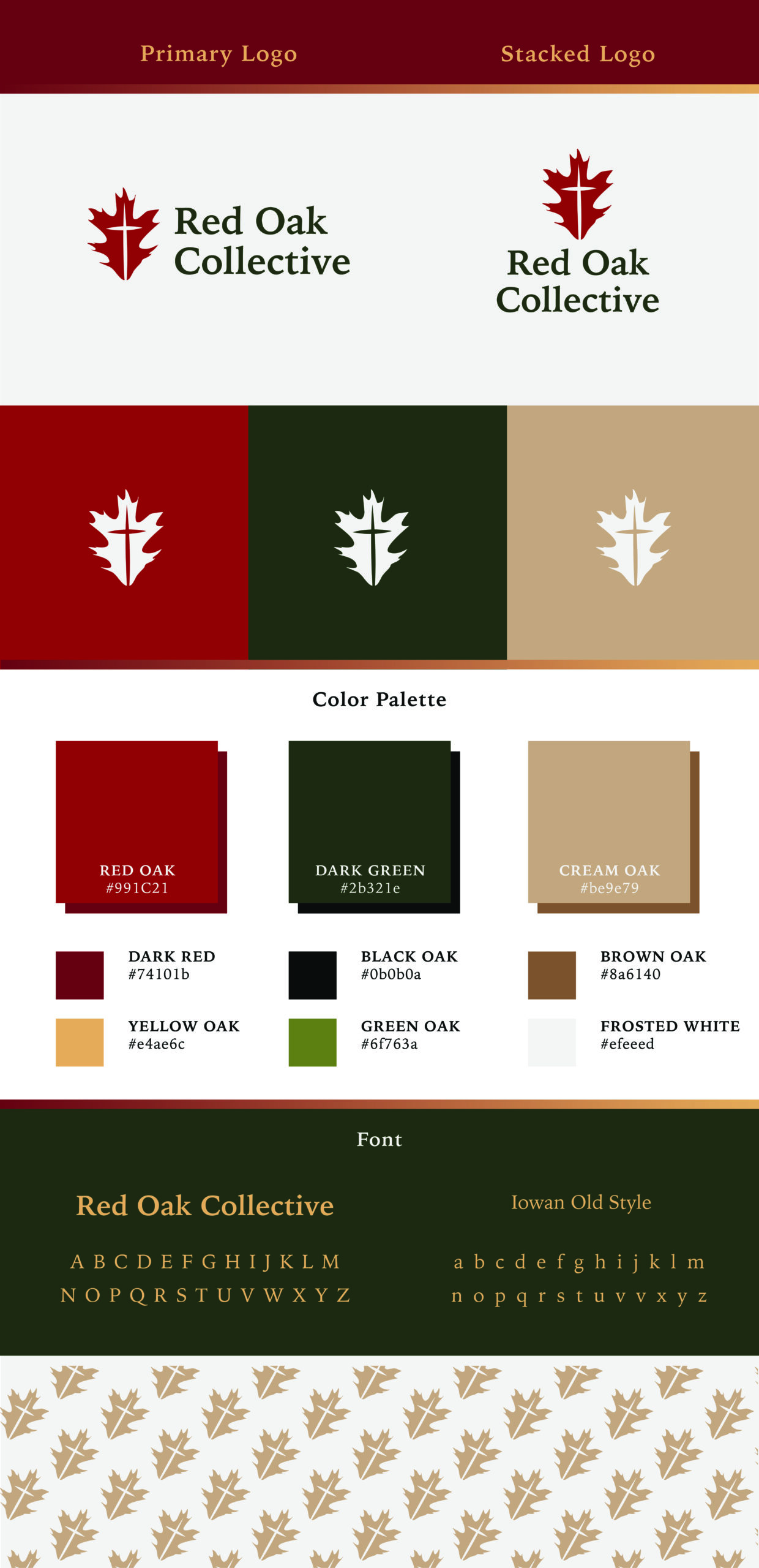 The final logo combines a red oak leaf with a cross inside to represent its stem, representing growth and Christianity.